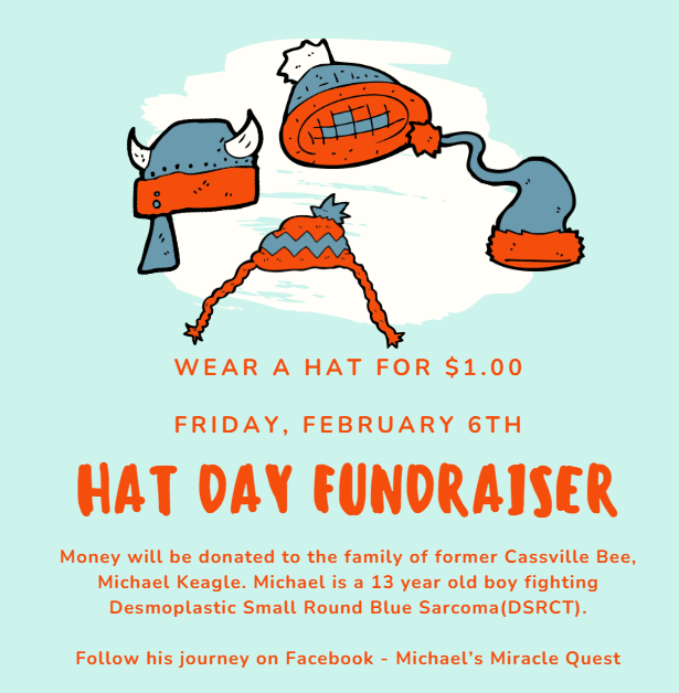Cassville Elementary will be hosting a hat day for $1.00 on Friday February 6th to donate to the family of former Cassville student, Micahel Keagle.