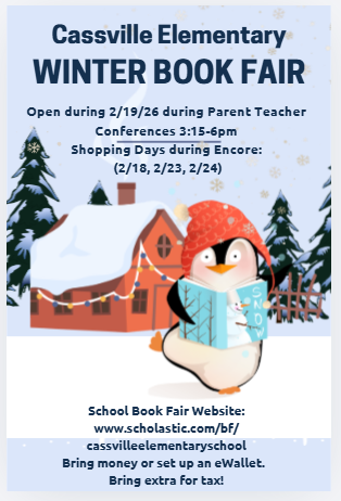 Winter book fair will be from February 19th-24th. Shopping days will be the 18th, 23rd, and 24th during the day. Book fair will also be open during parent teacher conferences on the 19th.